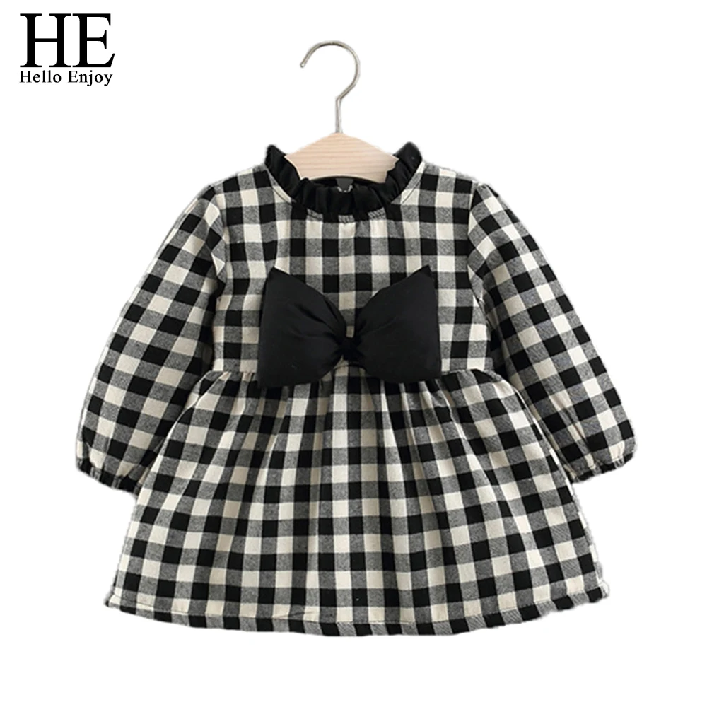 Discount HE Hello Enjoy Red Baby Dress Gowns Toddler Girl Clothing Long sleeve Plaid Bow 1st Birthday Princess Dress Kid Girl Clothes Online